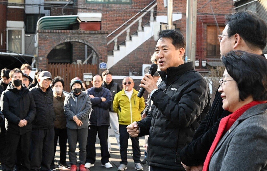 [도시경제채널 = 유주영 기자] 오세훈 서울시장이 27일(금) 오후 송파구 풍납동 모아타운 사업지를 방문해 주민들과 소통하며 사업 추진 현황을 점검했다.