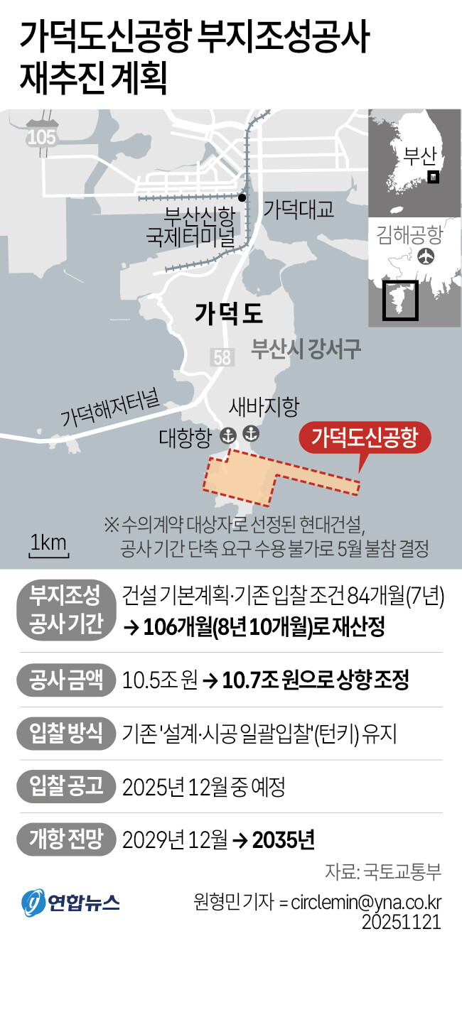 [그래픽] 가덕도신공항 부지조성공사 재추진 계획 /연합뉴스 제공
