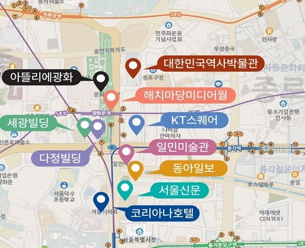 ◦ [민간] KT스퀘어, 세광빌딩, 다정빌딩, 일민미술관, 코리아나호텔, 동아일보, 서울신문 . / 서울시