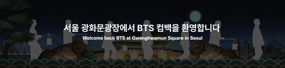 이와 함께 “서울 광화문광장에서 BTS 컴백을 환영합니다”라는 한글과 영어 메시지가 병행 송출되며 글로벌 축제 분위기를 한층 고조시키고 있다.