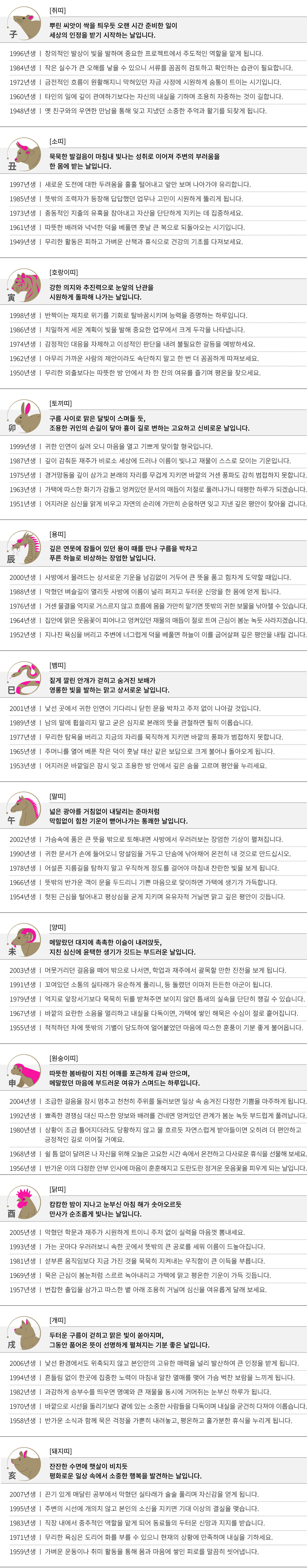 을묘 (乙卯) 오늘의 띠별 운세