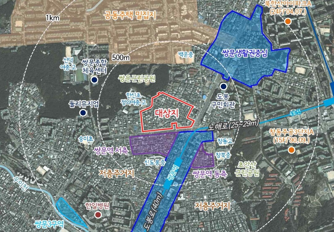 쌍문2구역은 2017년 사업성 부족으로 정비구역이 해제됐던 지역이다. 그러나 이번 신속통합기획을 통해 용도지역을 제2종 일반주거지역에서 제3종으로 상향하고, 사업성 보정계수(2.0배)를 적용해 용적률을 240%에서 300% 가까이로 높였다. 최고 층수도 과거 18층에서 39층으로 상향돼 사업성이 크게 개선됐다.