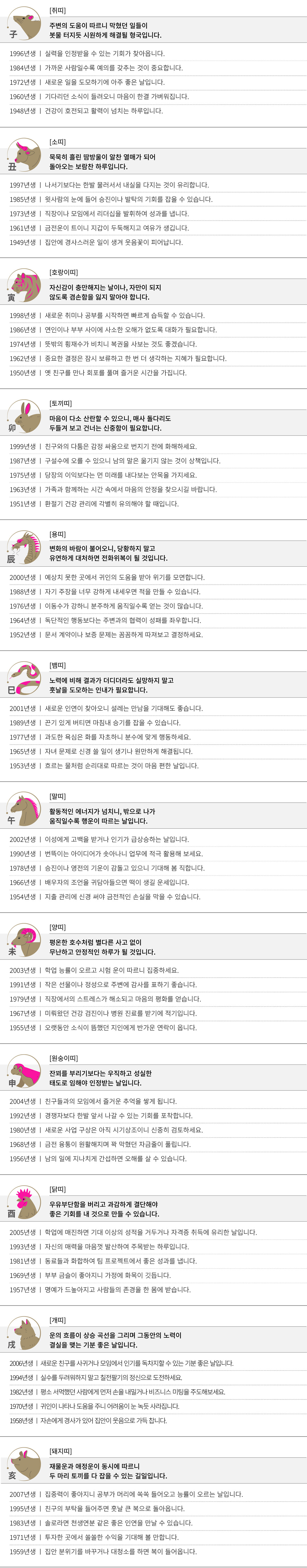정미 (丁未) 오늘의 띠별 운세