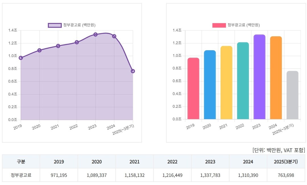 기존에는 여러 단계를 거쳐야 자료에 접근할 수 있었지만, 이제는 누리집 첫 화면의 전용 배너를 통해 바로 확인할 수 있다. 회원 가입이나 로그인 없이 누구나 자유롭게 열람할 수 있으며, ‘쉽게 보는 통계’ 메뉴를 통해 시각화 자료와 요약 통계도 제공된다. 이를 통해 중앙부처의 매체 유형별 광고 집행액 등 상세 현황도 직관적으로 파악할 수 있다.
