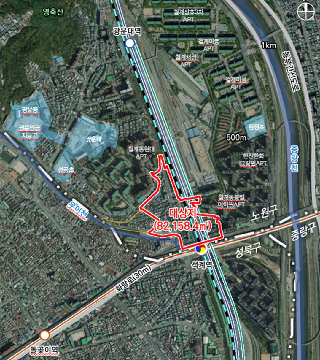 대상지는 지하철 환승역인 석계역 일대로, 역세권 중심기능 및 연결기능 강화를 목표로 82,158㎡ 규모의 지구단위계획구역 신설 계획도 함게 수립했다.