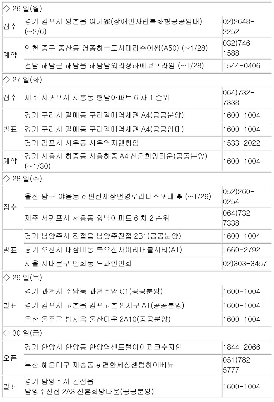 경기 김포시 양촌읍 '여기가'(장애인자립특화형공공임대), 제주 서귀포시 서홍동 '형남아파트6차' 등에서 청약을 진행한다.
