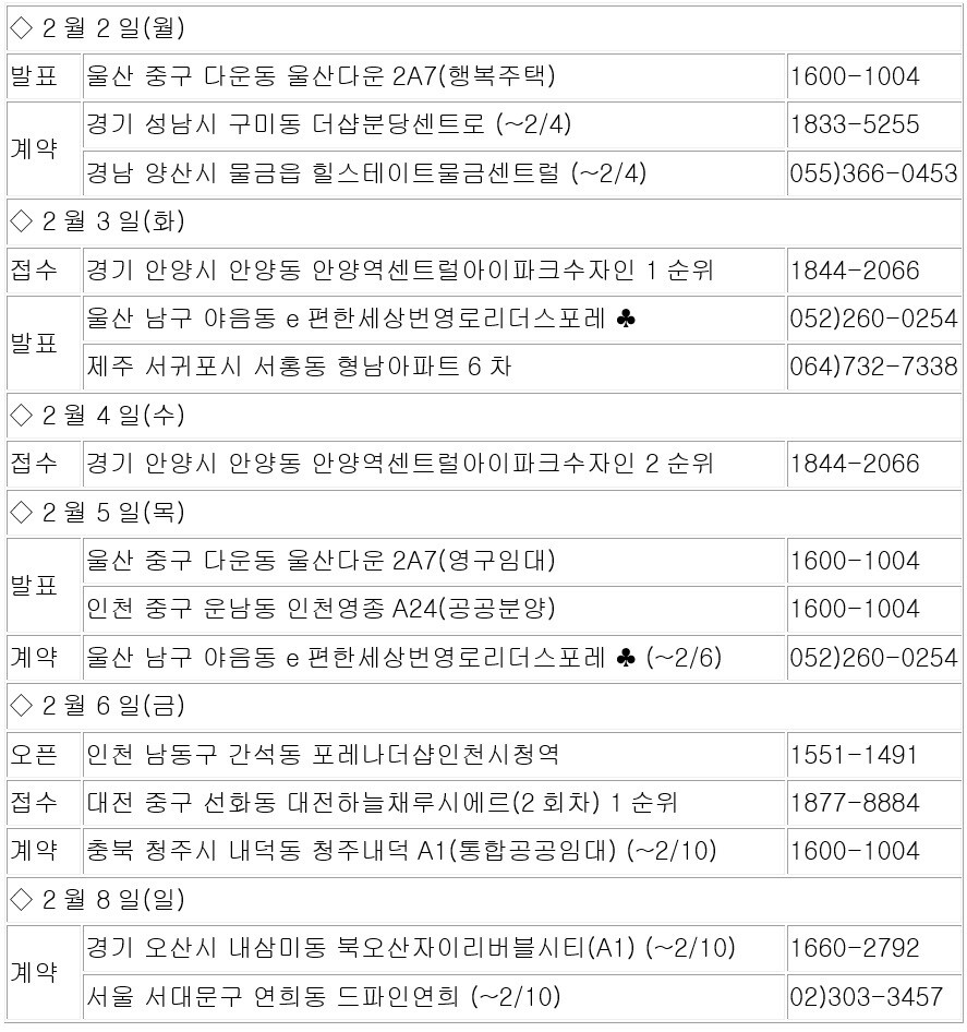 31일 부동산R114에 따르면 2월 첫째 주에는 전국 2개 단지에서 총 1천194가구(일반분양 748가구)가 분양을 시작한다.