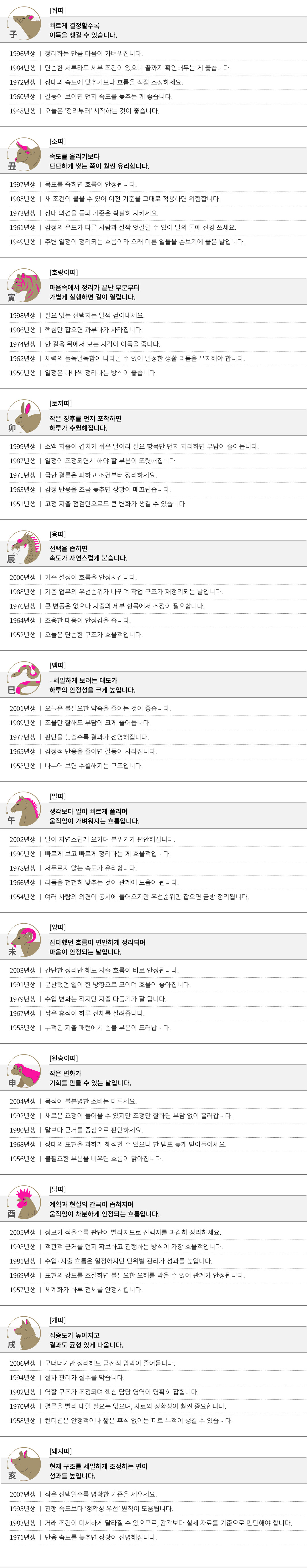 정미 (丁未) 오늘의 띠별 운세