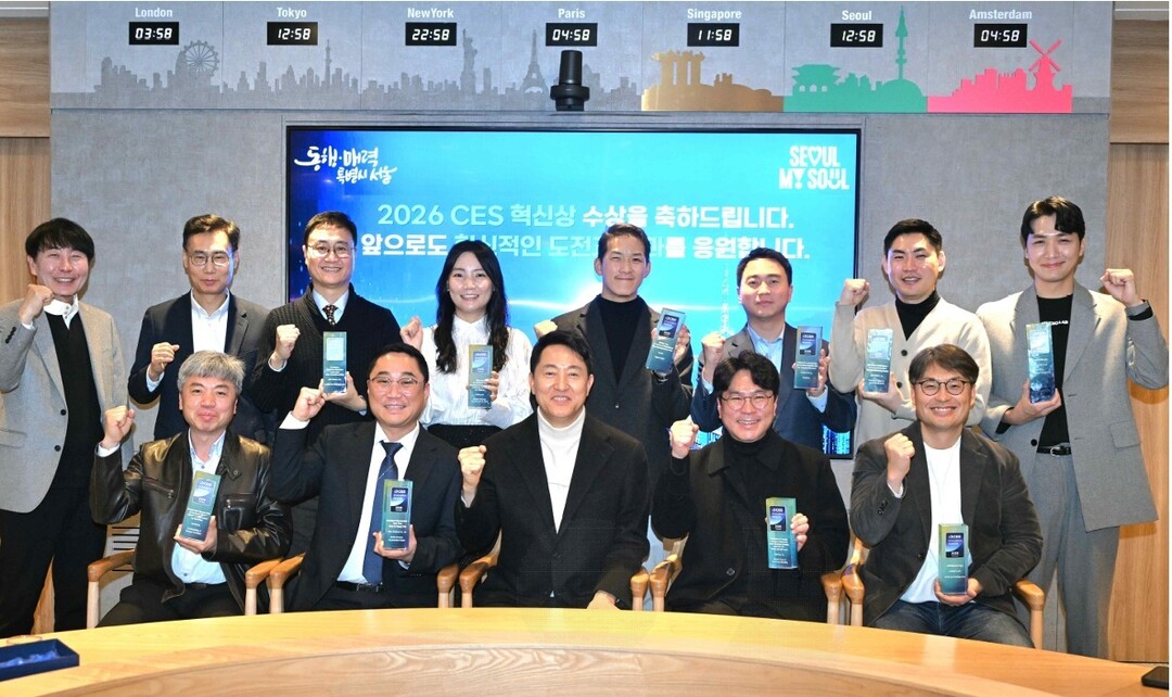 [도시경제채널 = 김학영 기자] 서울 소재 스타트업들이 세계 최대 가전·IT 박람회인 ‘CES 2026’에서 혁신상을 수상하며 글로벌 무대에서 기술력을 인정받았다. 오세훈 서울시장은 26일 서울시청 집무실에서 최고혁신상과 혁신상을 받은 기업 대표들과 간담회를 열고 현장 의견을 청취하며 지원 방안을 논의했다. 이날 자리에는 최고혁신상을 수상한 스튜디오랩과 혁신상을 받은 디오비스튜디오, 키즐링, 휴로틱스 등 총 10개 기업이 참석했다.