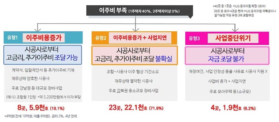 대형 시공사가 참여하는 강남권 정비사업장은 비교적 추가 이주비 조달이 가능하다. 그러나 중·소규모 사업장은 기본 이주비보다 3~4% 이상 높은 고금리를 감수해야 하며, 협상과 절차 지연으로 사업비 증가와 공급 차질이 심화되고 있다. 이는 금융 부담을 조합원에게 전가하는 구조로, 사업 정상화에 큰 걸림돌이 되고 있다.