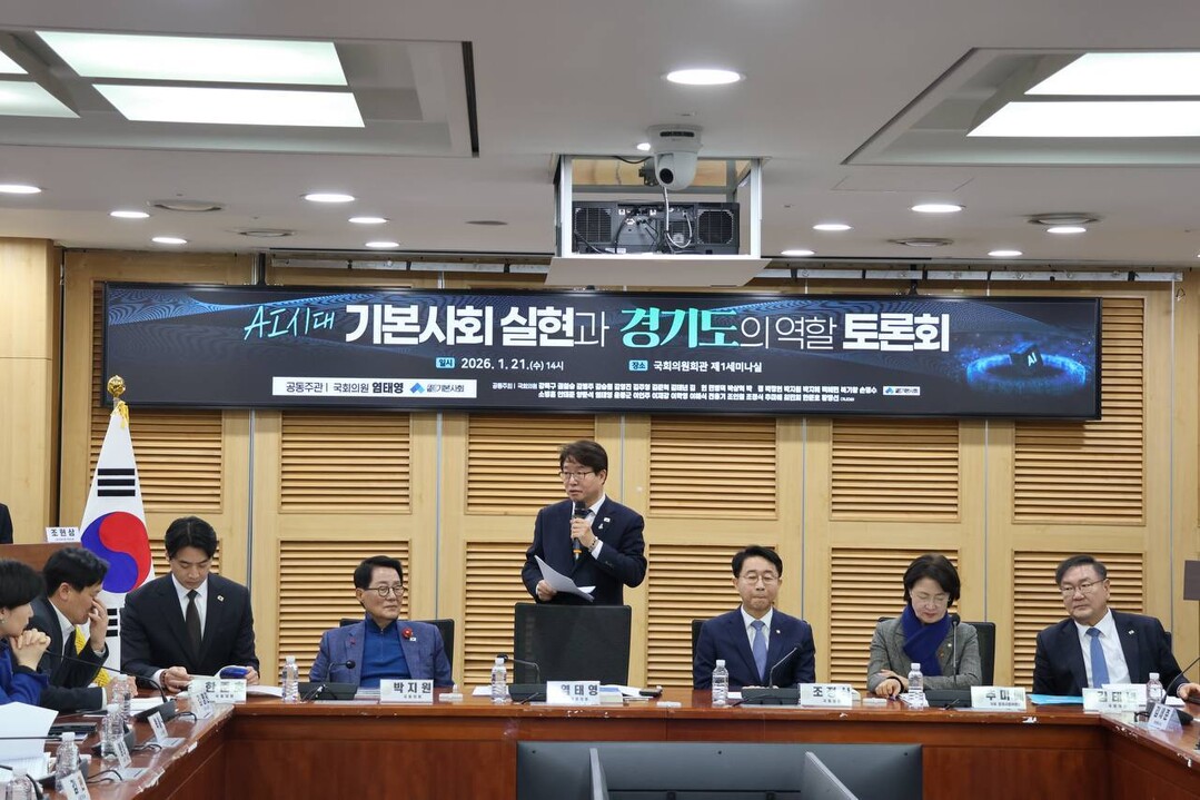 첫 번째 토론회는 염태영 의원(경기 수원시무)이 주최한 「AI 시대, 기본사회 실현과 경기도의 역할」이었다. 염 의원은 “기본사회는 단순한 복지가 아니라 국가 생존 전략”이라며 “경기도에서 반드시 성공 모델을 만들어 전국으로 확산해야 한다”고 강조했다.