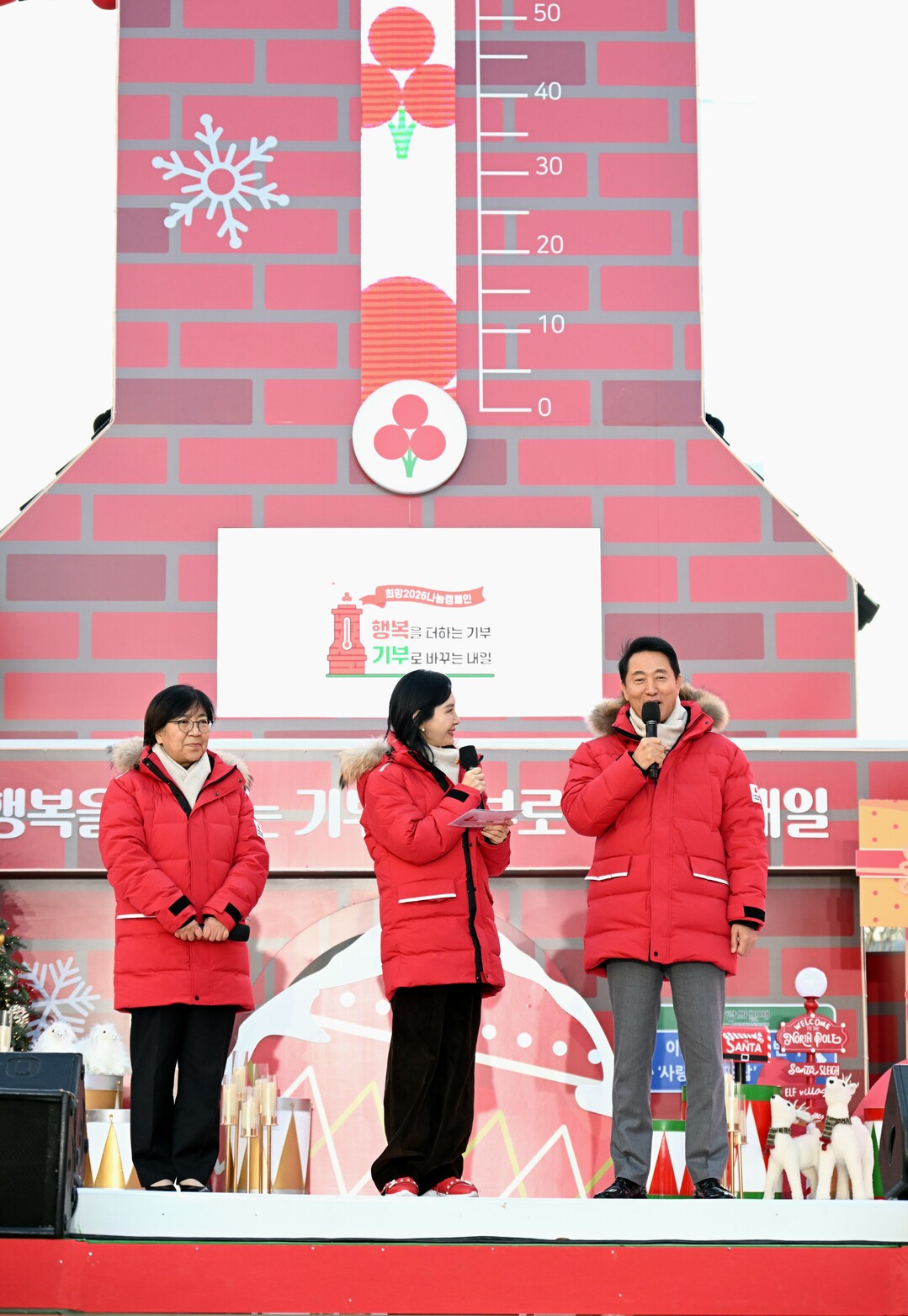 사랑의 온도탑은 전국 17곳에 설치돼 내년 1월 31일까지 운영되며, 목표액의 1%가 모일 때마다 1도씩 올라 100도에 도달하면 목표액 달성을 의미한다. 출범식에 앞서 오 시장은 서울시청에서 사회복지공동모금회 서울지회장과 최연소 아너 소사이어티 회원인 백은별 씨(17세)와 함께 사랑의열매 전달식을 진행했다.