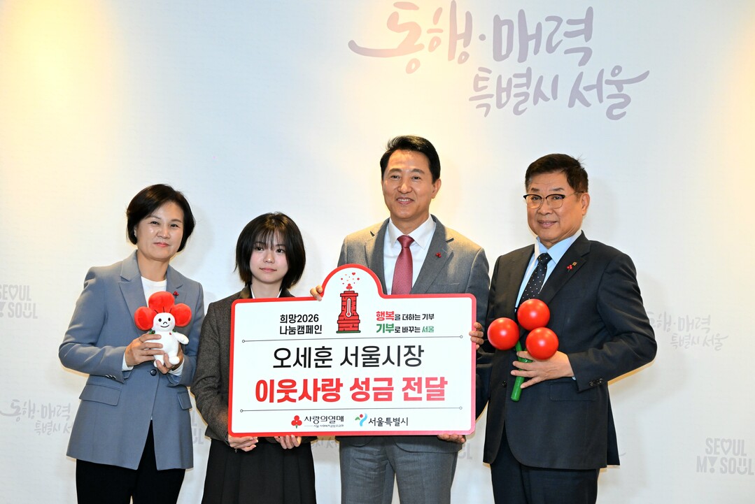 [도시경제채널 = 유주영 기자] 오세훈 서울시장은 1일 광화문광장에서 열린 ‘희망2026 나눔캠페인’ 출범식에 참석해 사랑의 온도탑 점등으로 모금 시작을 알렸다. 오 시장은 “서울시의 최우선 과제는 약자와의 동행”이라며 사회복지공동모금회와 시민들과 함께 사각지대를 따뜻하게 챙기겠다고 강조했다.