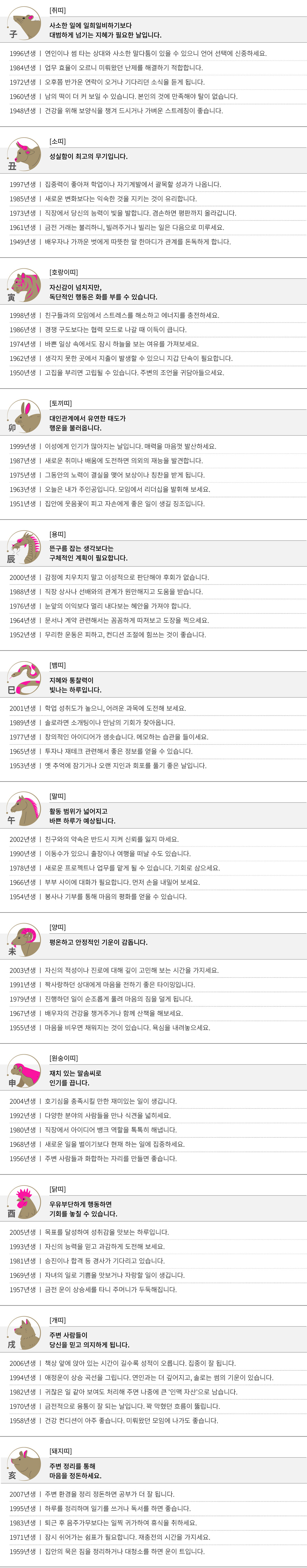 병신 (丙申) 오늘의 띠별 운세