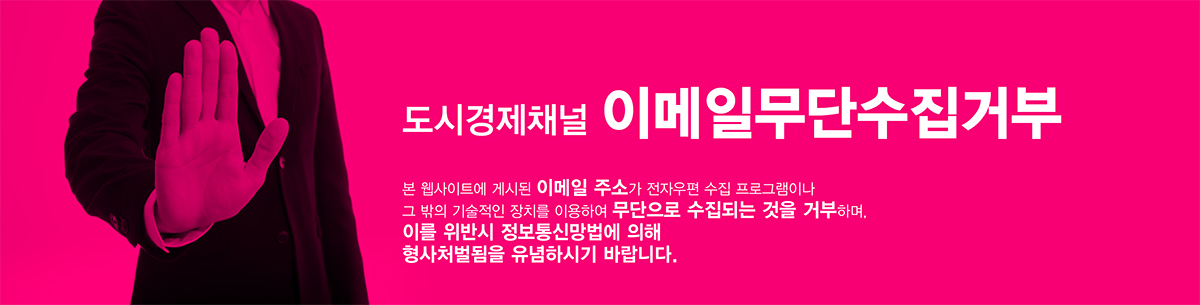 도시경제채널은 본 웹사이트에 게시된 이메일 주소가 전자우편 수집 프로그램이나 그 밖의 기술적 장치를 이용하여 무단으로 수집되는 것을 거부합니다.